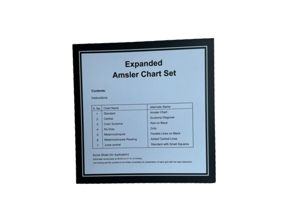 Explore our i-ETDRS Illuminated Cabinets, LogMAR & Cardiff Charts, LED Vision Charts, and Contrast Sensitivity Charts for complete visual testing. We also offer Fixation Targets, OKN Drums, Fusion Cards, RAF Rulers, Flippers, Occluders, and Lester Fixation Forceps for therapy and binocular assessments.