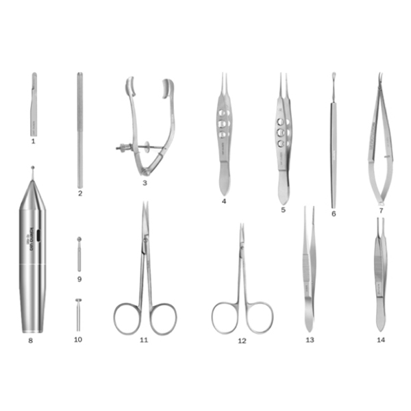 Contains: Miniature Blade #64 (bx) Chuck Handle Lancaster Eye Speculum McPherson Tying Forceps, straight Castroviejo...