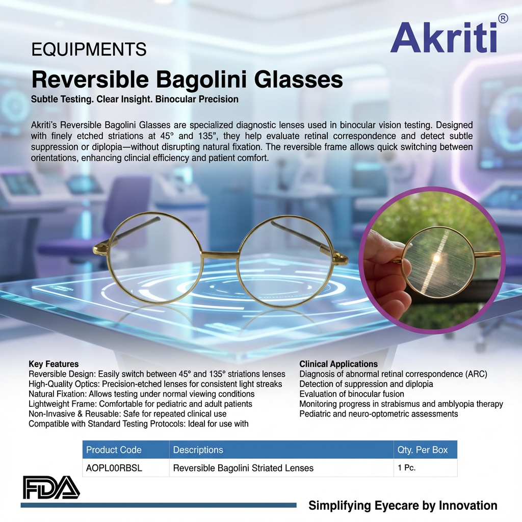 Bagolini Lenses Mounted in Reversible Frame Ease of Use for Both Patient and ClinicianThe Bagolini...