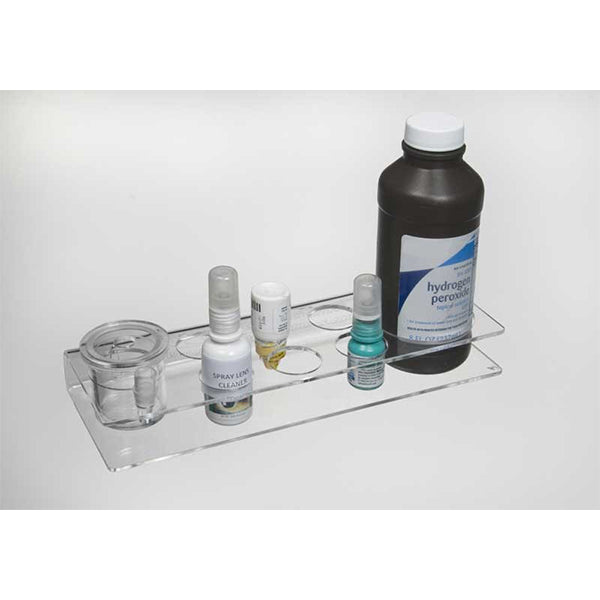 Has a container for holding peroxide to sterilize tonometer tips and a drying rack to...