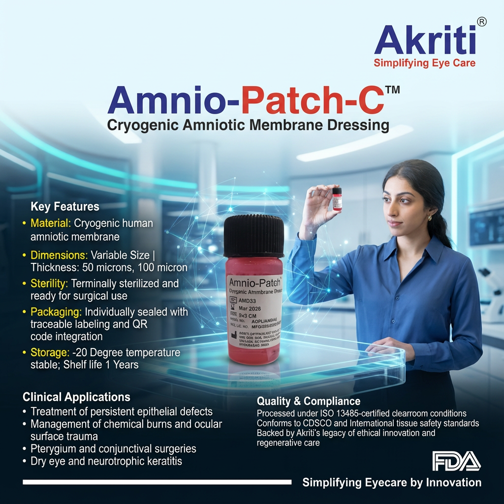 Akriti Ophthalmic Pvt Ltd introduces Amnio-Patch C™, a biologically active graft derived from human placental tissue, precision-processed to deliver superior healing across ophthalmic, wound care, and regenerative medicine applications.
