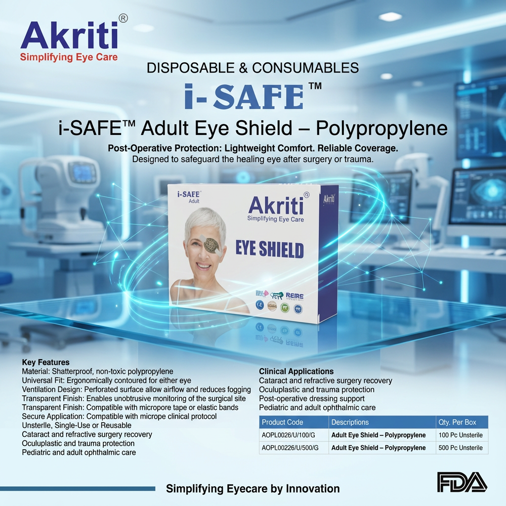 Akriti PP Eye Shields are designed to provide reliable protection and secure dressing support following ophthalmic surgery. Crafted from high-grade, shatterproof polypropylene, these shields offer patients both safety and comfort during the healing process.