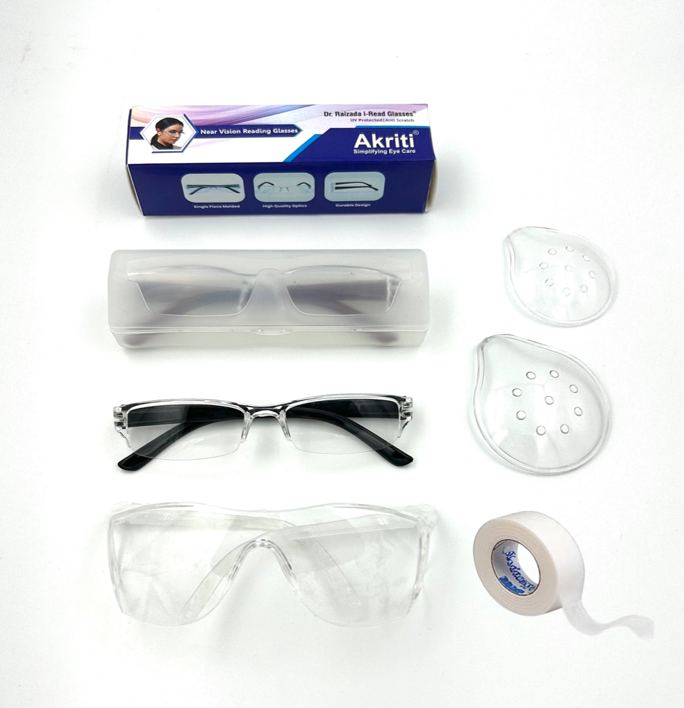 - Our Post Op Cataract Kits contain Large or Medium UV400 Cataract glasses, a wrapped polycarbonate eye shield, and Hypoallergenic paper tape (30ft).
