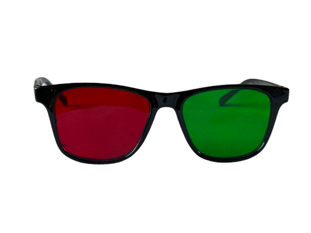 These Red/Green Anaglyph glasses are mounted in a durable Plastic Β frame with spring loaded temples and come with a soft storage case. These are not the thin breakable plastic frames furnished with most Anaglyph products.