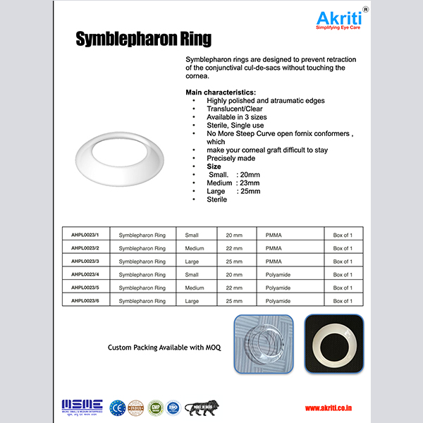 Symblepharon rings are designed to prevent retraction of the conjunctival cul-de-sacs without touching the cornea.
