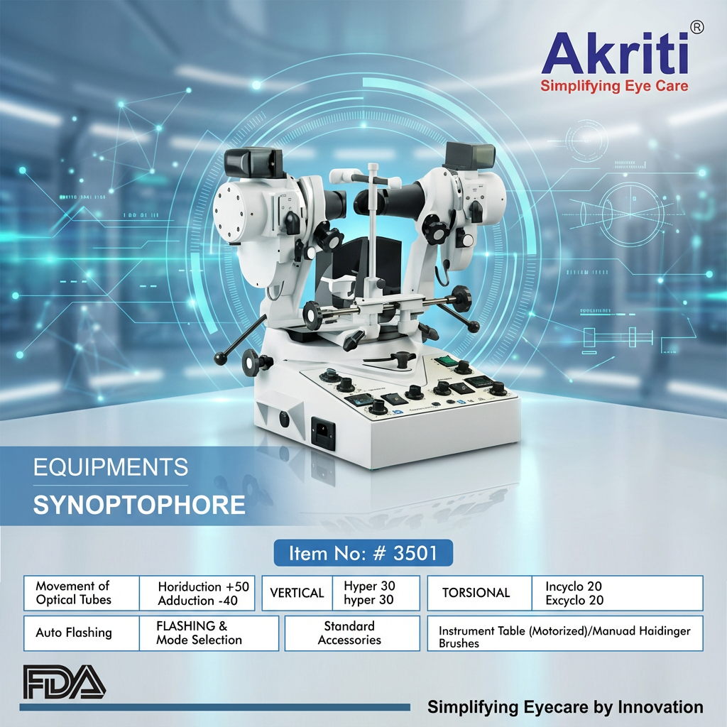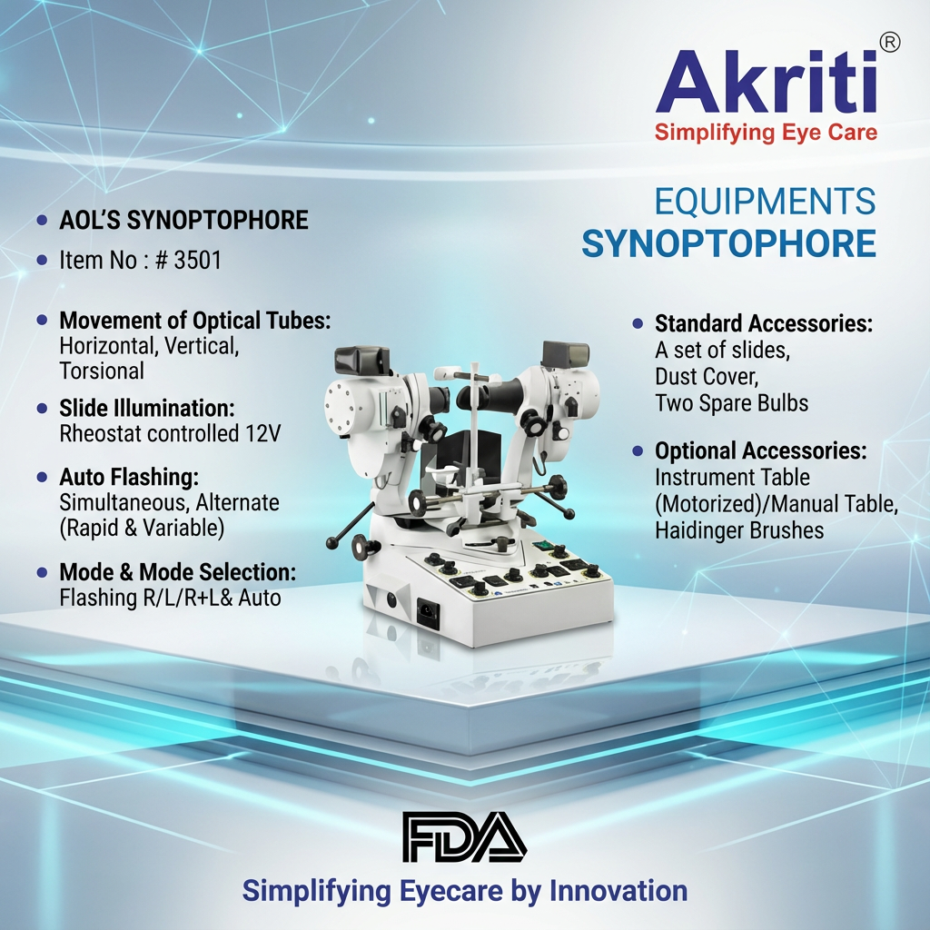 Offers a multi featured Synoptphore for the diagnosis and treatment of squint diseases. A built in after image device employs the special pair of after image slides provided. Abnormal retinal correspondence can be detected by using these slides, coupled with the intense light source obtained by rotating a switch on the base.