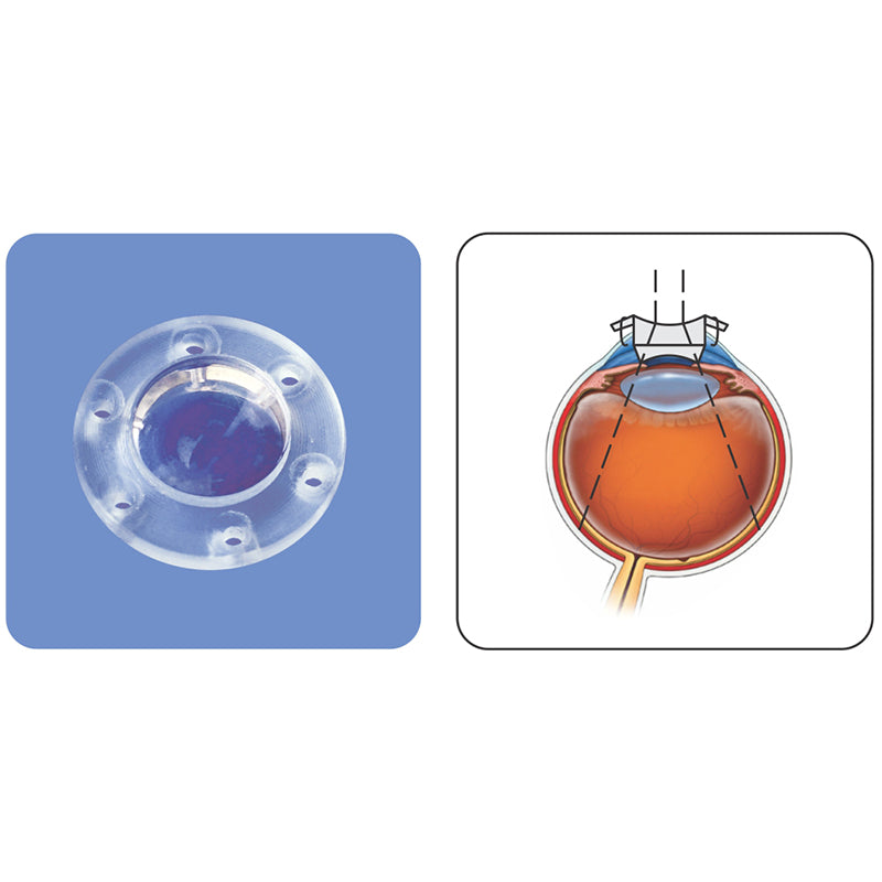 - Six suture holes around the rim for creating a sealed system for the VR procedure